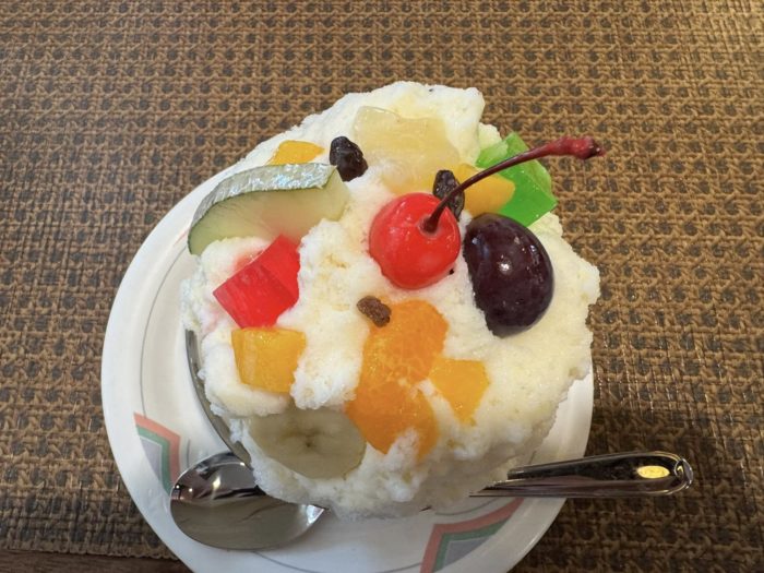 ミーティングを終え、昼食のつもりで、天文館に向かう。「鹿児島名物が食べられるしっかりした定食」でも、と思っていたはずなのに、天文館むじゃきの看板に、藩士*の我々の足は吸い寄せられてしまった。言わずもがな、天文館むじゃきは『対決列島 〜甘いもの国盗り物語〜 第2夜』(by水曜どうでしょう)の聖地。