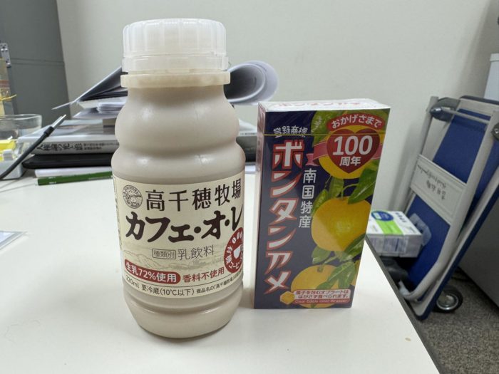 あれこれ頭を悩ましつつ、頭痛薬を買いに近くのドラッグストアへ向かったところ、そこで見つけたのは、先日の鹿児島滞在時にどこを探しても見つからなかったボンタンアメと高千穂牧場のカフェオレ。 ボンタンアメはSNSでブレイクしたせいで、この地域で業者が買い付けたのかもしれない。高千穂牧場のカフェオレは富山以来。中部のみなさんは高千穂牧場好きなのか。